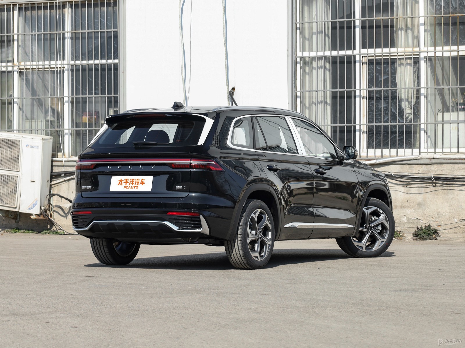 在造型上,新款星越L(询底价|查参配)长风版延续现款外观造型设计,前脸拥有盾型中网格栅,中间镀铬饰条保持内凹造型,两侧犀利的大灯组内部填充多重光源,配合银色饰条装点的前包围。最后车头下方贯通式的熏黑前包围,两侧加入獠牙式的镀铬饰条点缀。值得注意的是,本次新车新增东方曜同款莫高蓝外观配色。