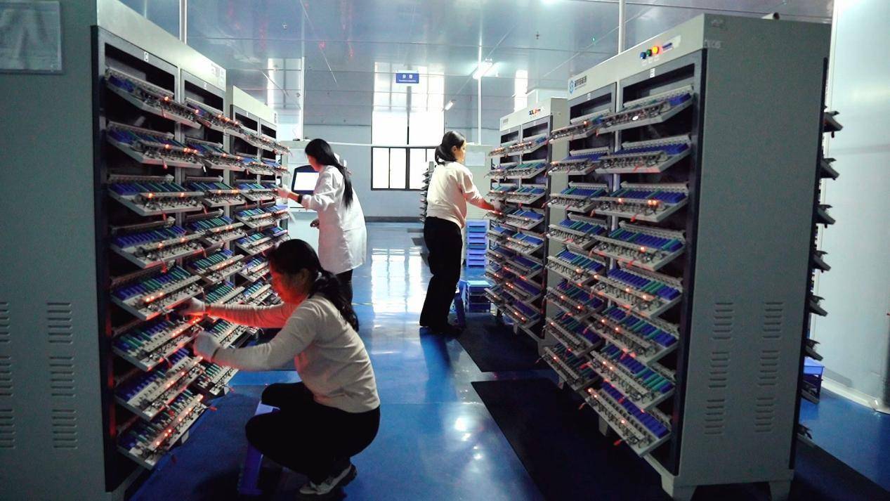 走进湖南沃尔顿动力科技有限公司的生产车间,映入眼帘的是一派繁忙而有序的景象,各条生产线高速运转,配料、检测、包装等工序已是“火力全开”。在检测车间,数十万支18650锂离子电池整齐排列,正通过先进的检测设备进行着一道道严格的性能测试,通过测试的电池闪烁着红光,工人们将其分拣取下,并进行打包装箱。这批品质优良的锂离子电池即将发往全国各地,并远销海外市场。