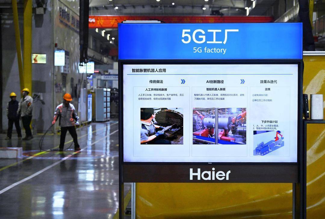 工人在青岛海尔中央空调互联工厂生产车间内忙碌。(新华社发)